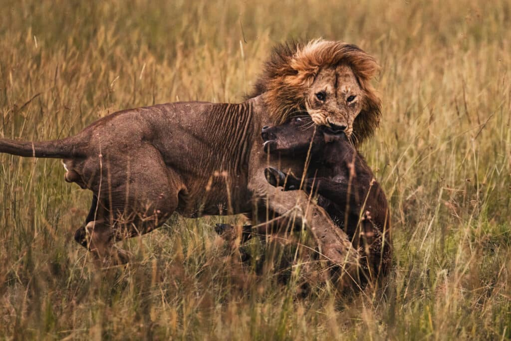 Naboisho is a conservancy that feels almost cinematic. Sometimes morning mist hangs low over the ground, scattering light into soft beams. Lions roam through this haze, creating some of the Mara’s most atmospheric photographic conditions.
